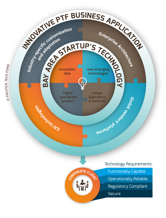 PACIFICA TECH FUND runs innovative projects that provide corporate clients with business applications that use unique ideas, methods and algorithms of new and most promising emerging technologies developed in startup companies in the Bay Area, by adapting those innovative products to the requirements and demands of local market, and extending them to follow clients’ corporate technology policies and standards.